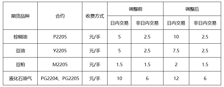 经研究决定,自2022年3月15日交易时(即3月14日夜盘交易小节时)起,对相关品种合约手续费标准进行调整,具体如下: