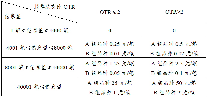 1.客户在期货和期权某个合约上的申报费=Σ客户在该合约上各档位的信息量 х 相应费率,具体费率标准如下。