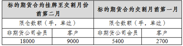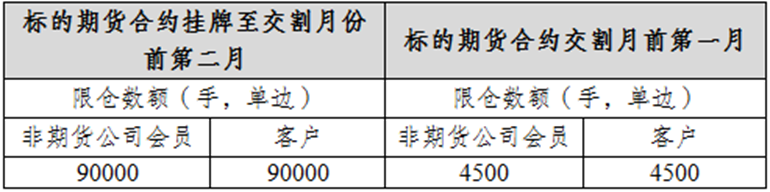 非期货公司会员和客户持有的某月份期权合约所有看涨期权的买持仓量和看跌期权的卖持仓量之和、看跌期权的买持仓量和看涨期权的卖持仓量之和,分别不得超过下表所示的持仓限额。具有实际控制关系的账户按照同一账户管理。