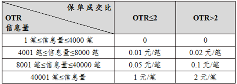 注释:信息量=报单、撤单、询价等交易指令笔数之和。报单成交比(OTR)=(信息量/有成交的报单笔数)- 1。有成交的报单笔数为0时, 视其为1来计算OTR。上述信息量包括立即全部成交否则自动撤销指令(FOK)和立即成交剩余指令自动撤销指令(FAK)产生的报单和撤单笔数。