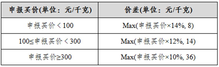 非期货公司会员和客户可以在所有已挂牌期权合约上向做市商询价。询价请求应当指明合约代码,对同一期权合约的询价时间间隔不应低于60秒。当某一期权合约最优买卖价差小于等于如下表所示价差时,不得询价。