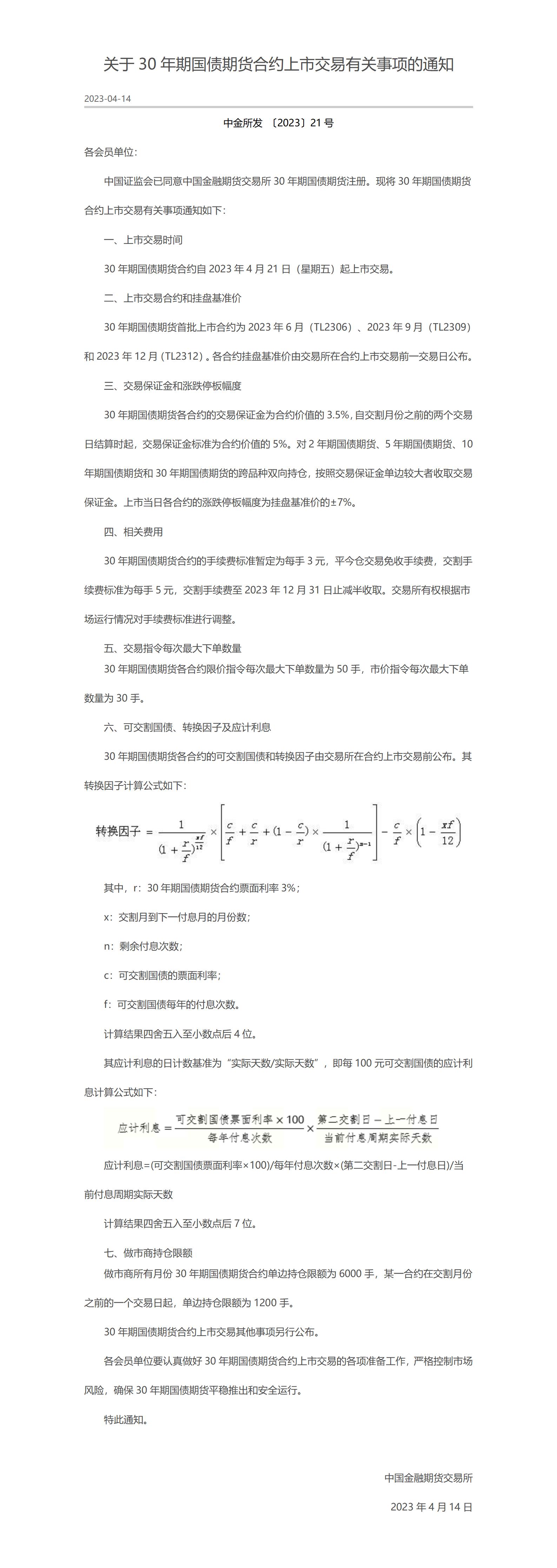 关于30年期国债期货合约上市交易有关事项的通知