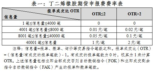 丁二烯橡胶期货对客户信息量收取申报费,如下表所示。