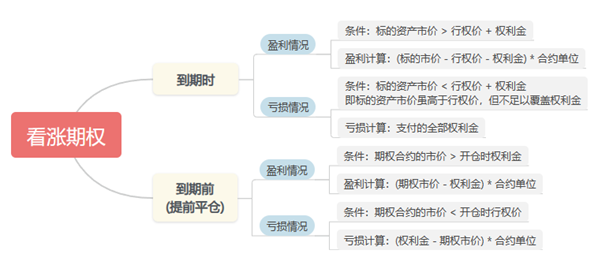 到期收益:如果标的资产价格上涨超过行权价格加上权利金时获利。
