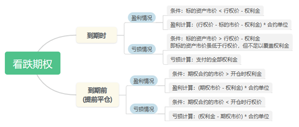 盈亏情形:与看涨期权的概念相同, 提前平仓的盈亏计算方式为平仓时的权利金减去开仓时的权利金。