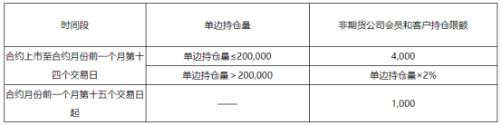 非期货公司会员或者客户在上述期货品种各合约上单日开仓量不得超过其交易限额。该单日开仓量是指非期货公司会员或者客户当日在单个合约上的买开仓数量与卖开仓数量之和。