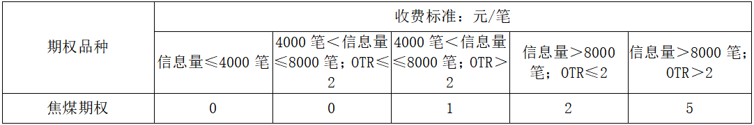 焦煤期权收取申报费,按日收取。收费标准如下: