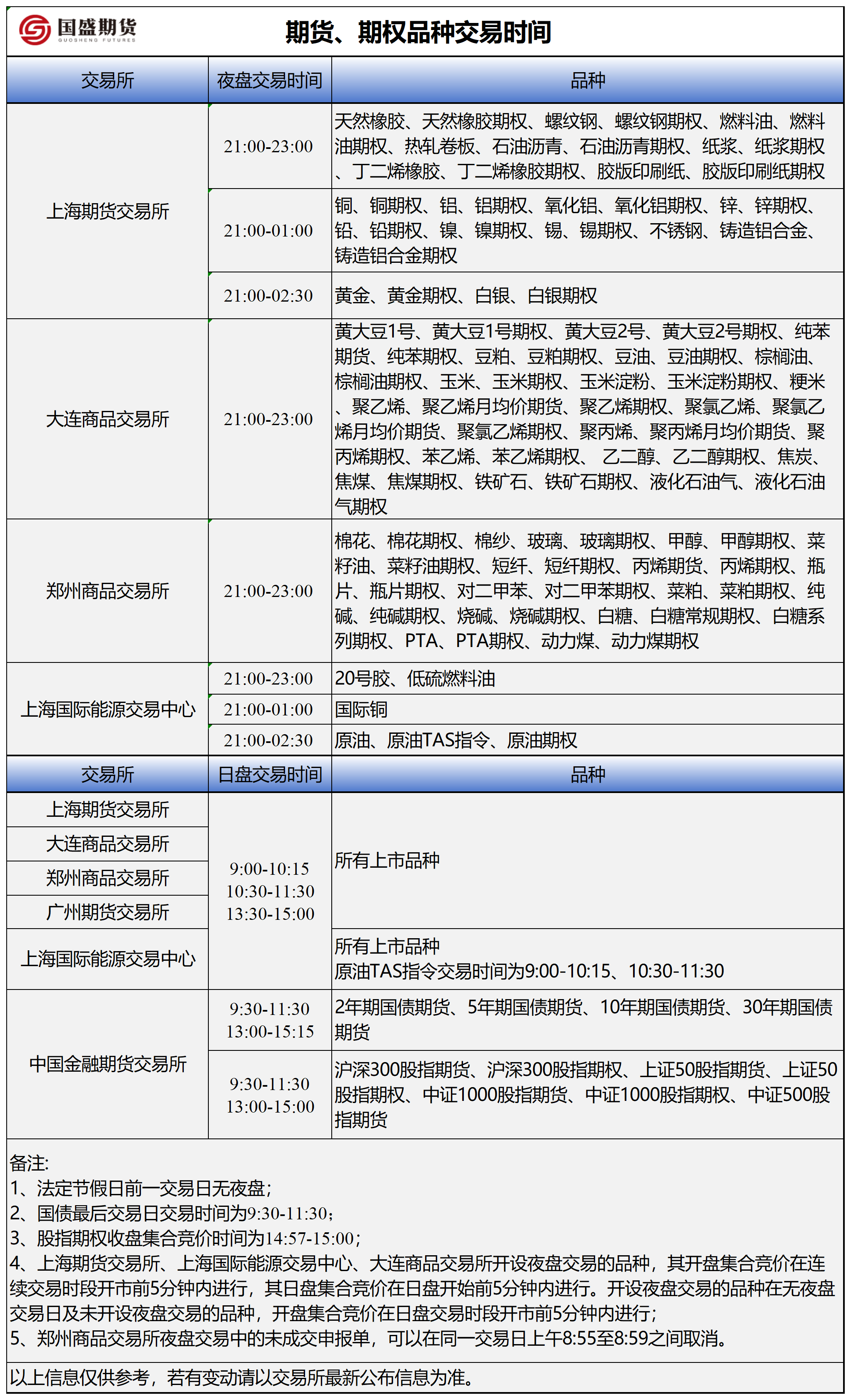 期货期权交易时间